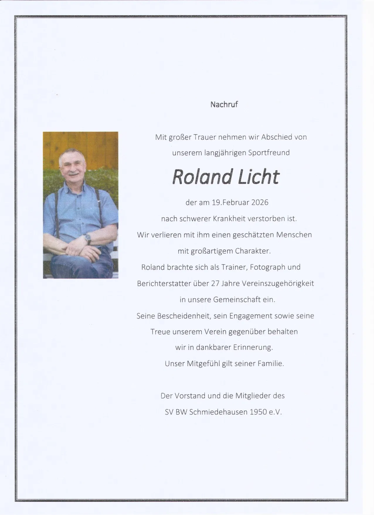 Nachruf für Roland Licht