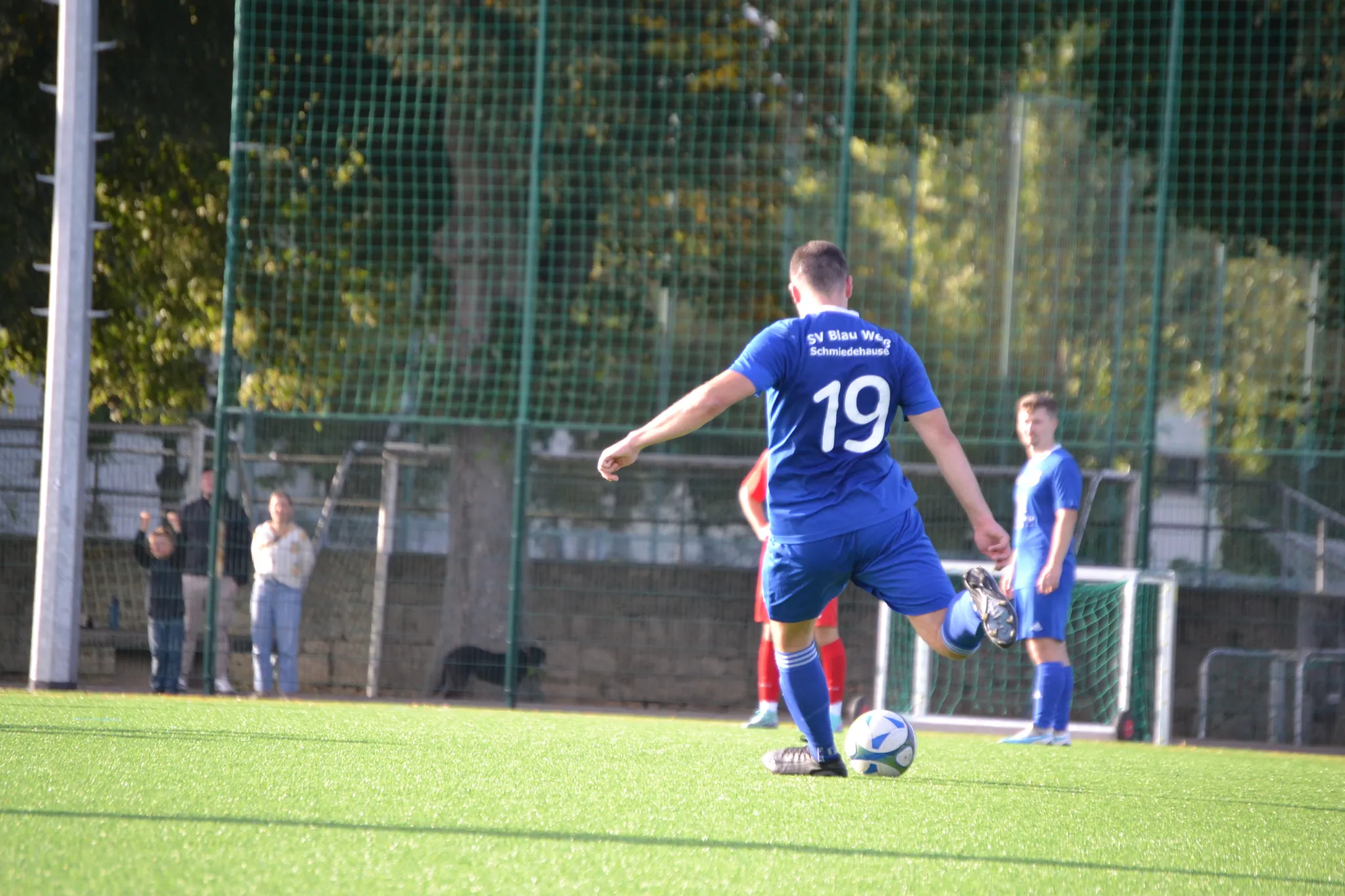 In der 93. Minute der Nachspielzeit kombinierten sich D. Meißner und J. Dennstedt energisch durch die Abwehrreihen, ehe Niklas Baum im zweiten Versuch den Ball über die Torlinie drückte und das 1:2 für den SV Blau Weiß Schmiedehausen machte! Die offiziell drei Minuten Verlängerung wurden auf fast acht ausgedehnt, dennoch ließ sich unser Team nicht beirren und kämpfte bis zum Schlusspfiff.