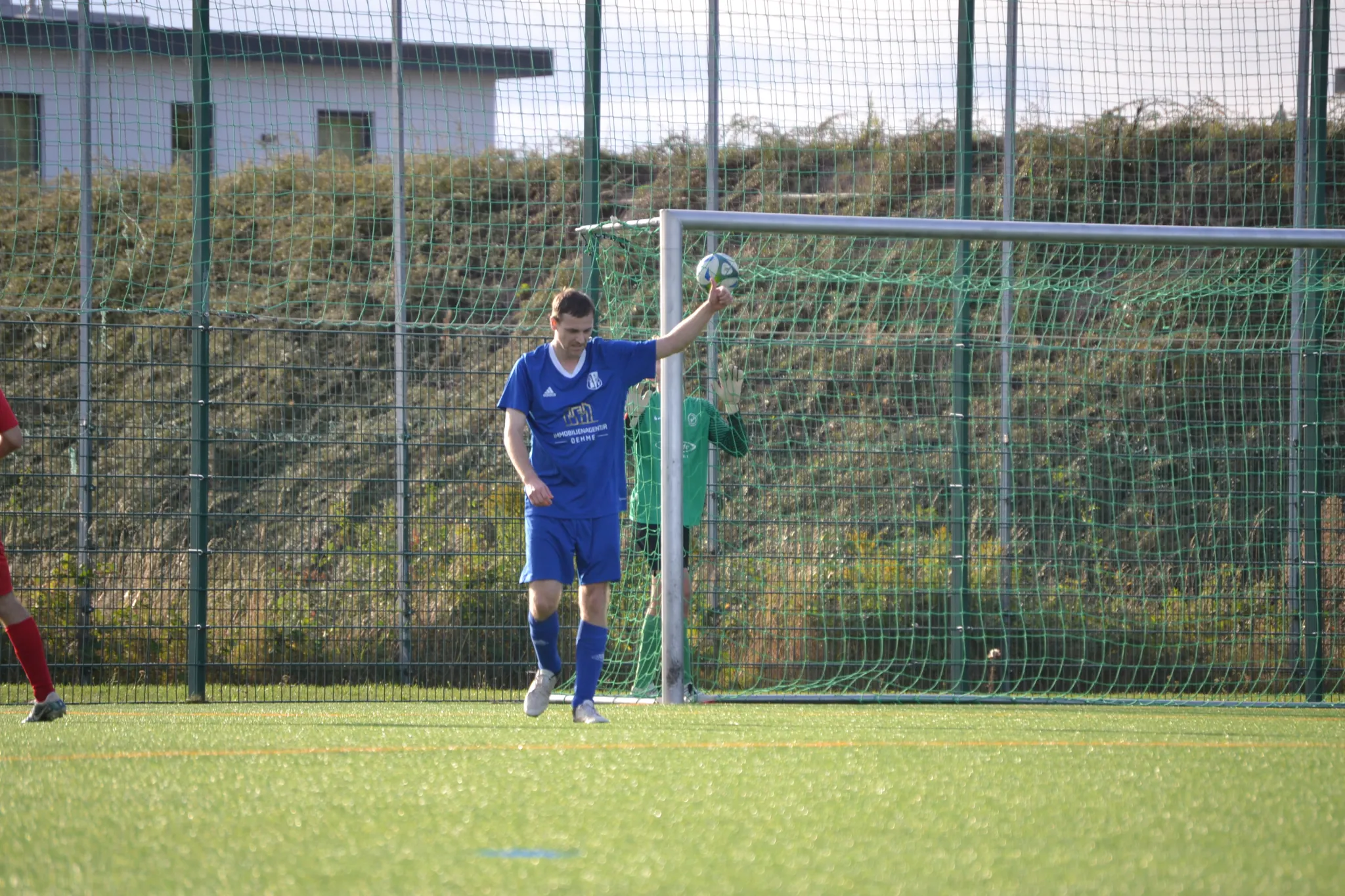 Nach dem frühen Treffer taten wir uns schwer weitere Akzente nach vorn zu setzen. Die Gastgeber kamen immer besser ins Spiel und übten großen Druck aus. Unsere Jungs warfen sich in jeden Ball, doch kurz vor der Pause passierte das Unglück. Luke wollte nach einer Ecke den Ball festhalten, dieser rutschte ihm jedoch aus den Händen und direkt vor die Füße der Gastgeber - somit 1:1 in der 40. Minute. Mit diesem Ergebnis ging es in die Kabine.